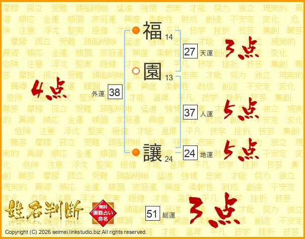 福園讓さんの人運は37画の5点!
