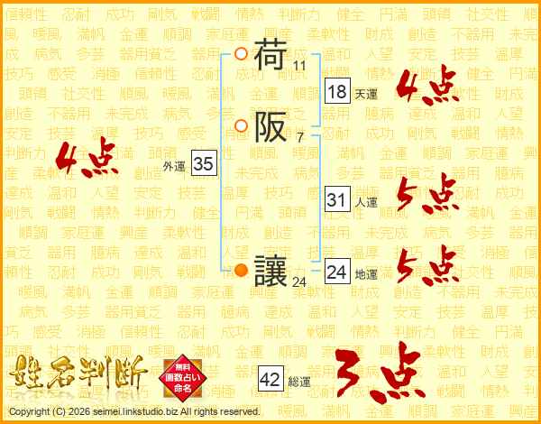 荷阪讓さんの天運は18画の4点!