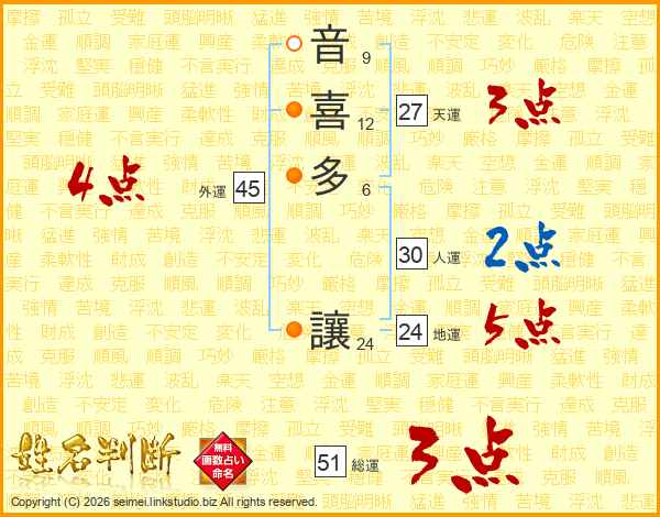 音喜多讓さんの総運は51画の3点!