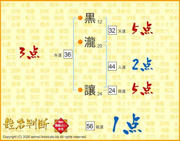 黒瀧讓さんの総運は56画の1点!