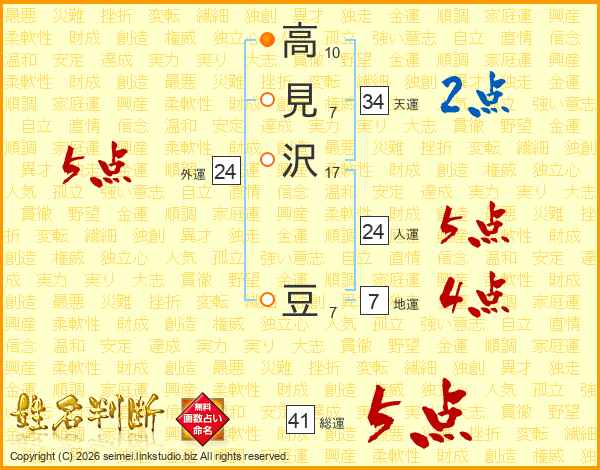 高見沢豆さんの総運は41画の5点!