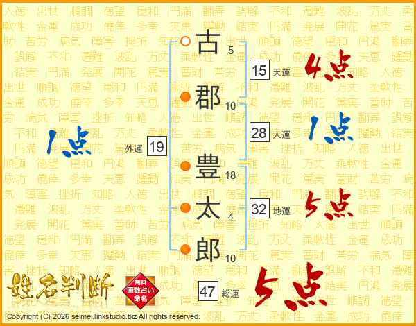 古郡豊太郎さんの総運は47画の5点!