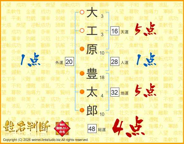 大工原豊太郎さんの総運は48画の4点!