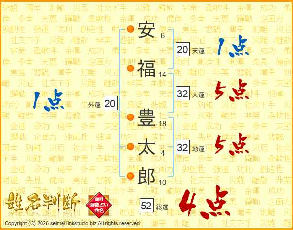 安(6画)福(14画) 豊(18画)太(4画)郎(10画)