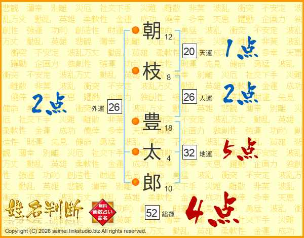 朝枝豊太郎さんの総運は52画の4点!