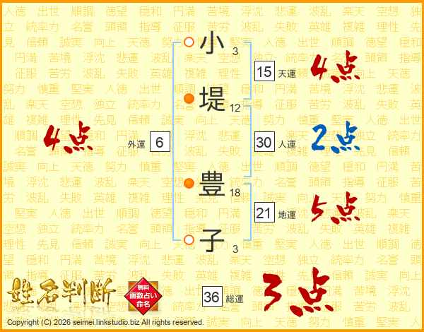 小堤豊子さんの総運は36画の3点!