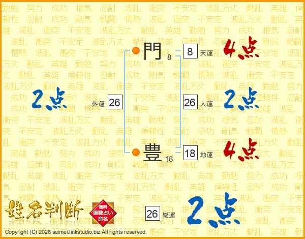 門豊さんの総運は26画の2点!