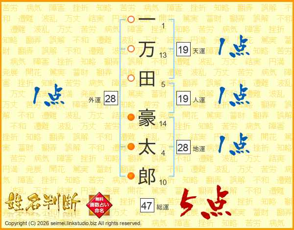一万田豪太郎さんの総運は47画の5点!