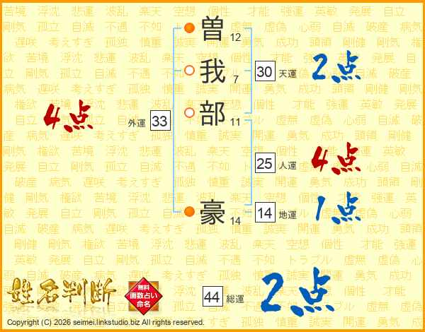曽我部豪さんの人運は25画の4点!