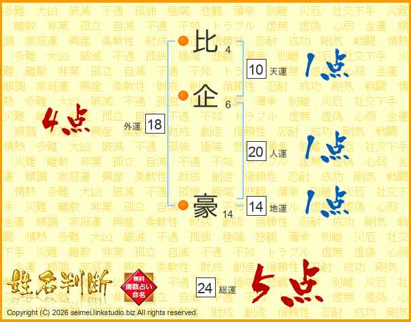 比企豪さんの総運は24画の5点!