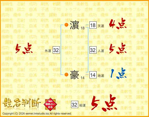 濵豪さんの総運は32画の5点!