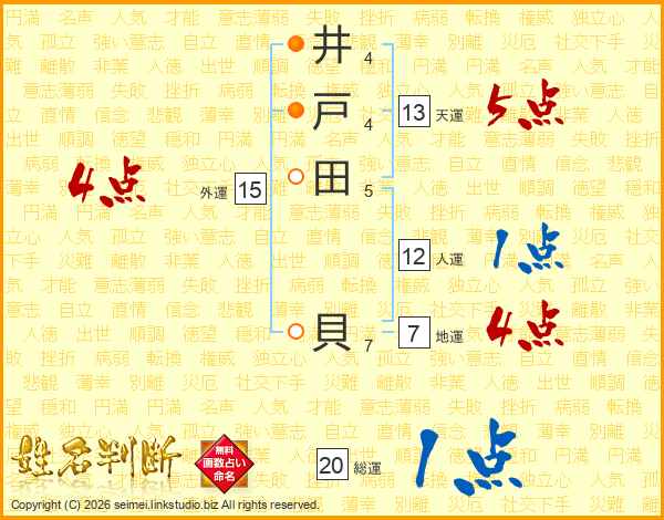 井戸田貝さんの地運は7画の4点!