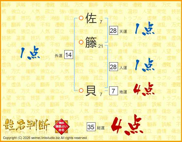 佐籐貝さんの総運は35画の4点!