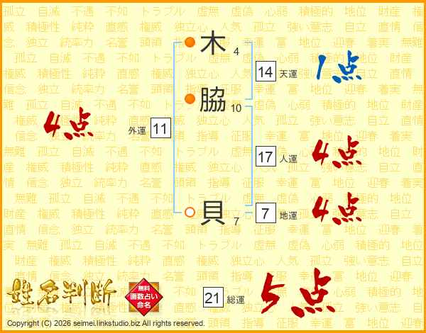 木(4画)脇(10画) 貝(7画)