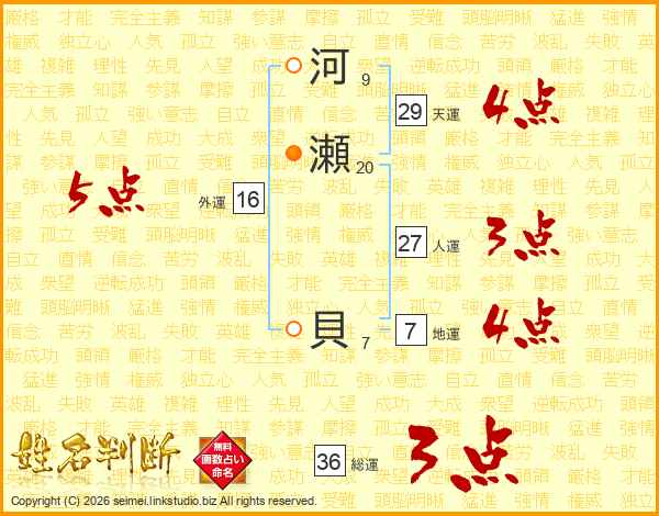 河瀬貝さんの総運は36画の3点!