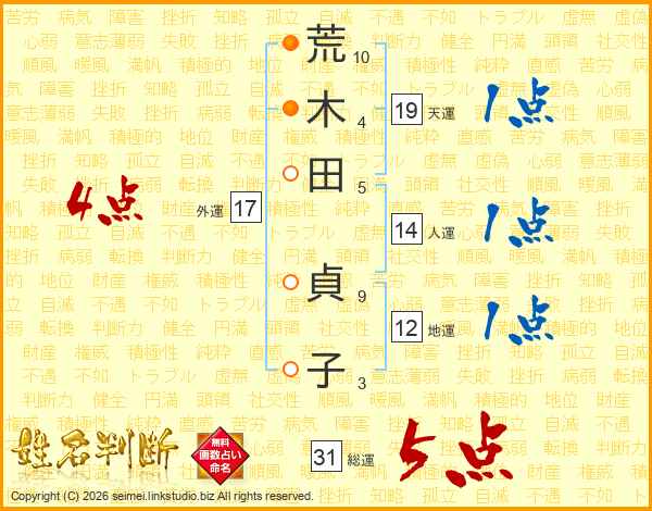 荒木田貞子さんの総運は31画の5点!