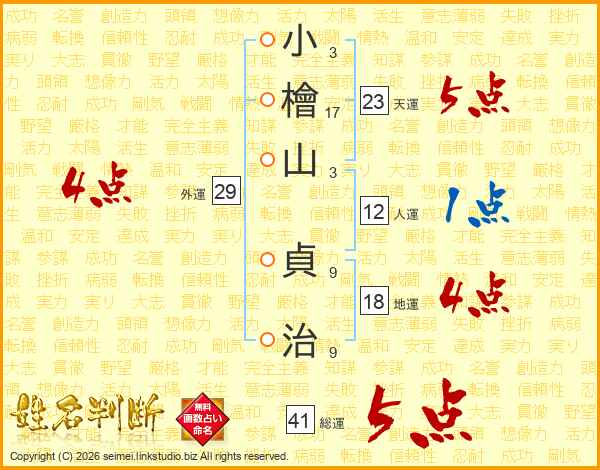 小檜山貞治さんの総運は41画の5点!