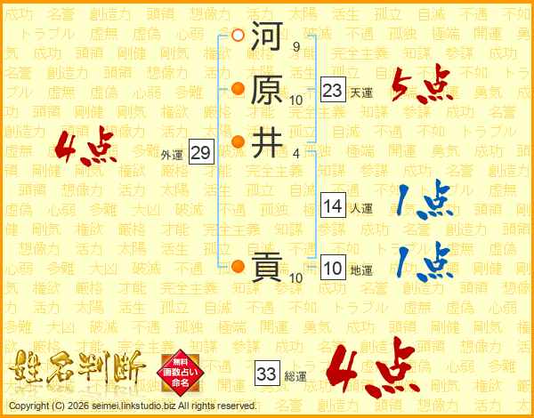 河原井貢さんの総運は33画の4点!