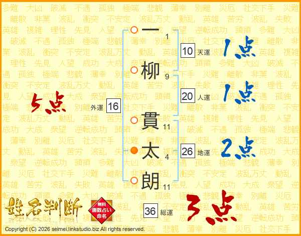 一柳貫太朗さんの地運は26画の2点!