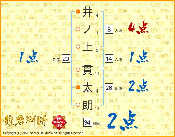 井ノ上貫太朗さんの総運は34画の2点!