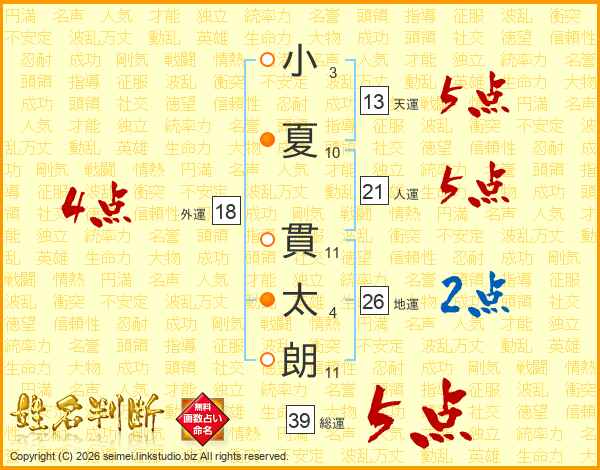 小夏貫太朗さんの総運は39画の5点!