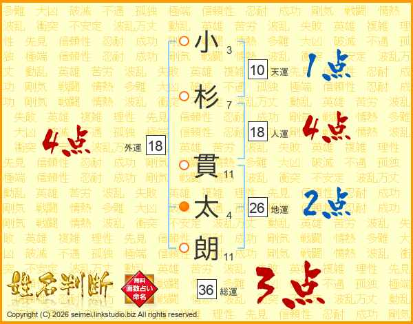 小杉貫太朗さんの総運は36画の3点!