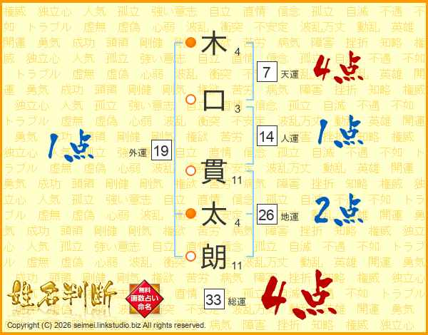 木口貫太朗さんの総運は33画の4点!