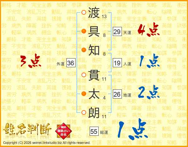 渡具知貫太朗さんの地運は26画の2点!