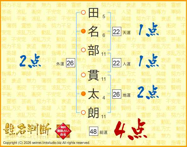 田名部貫太朗さんの地運は26画の2点!