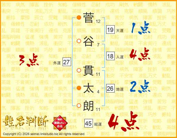 菅谷貫太朗さんの総運は45画の4点!