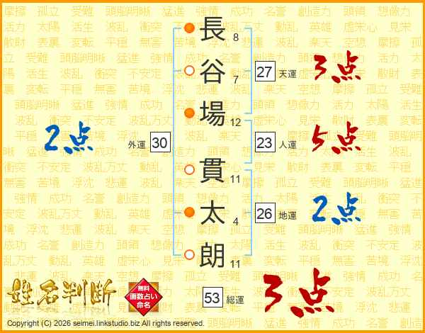 長谷場貫太朗さんの天運は27画の3点!