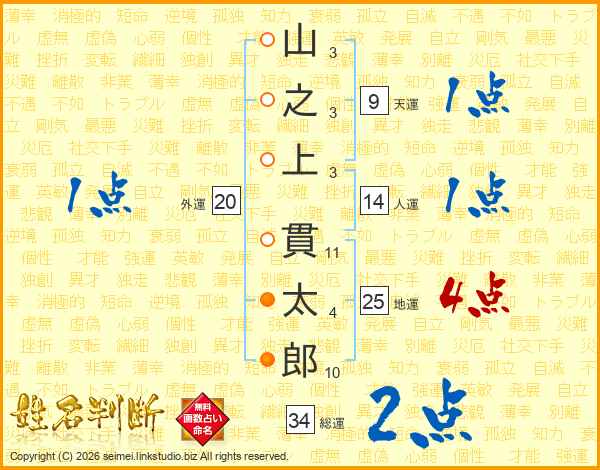 山之上貫太郎さんの総運は34画の2点!