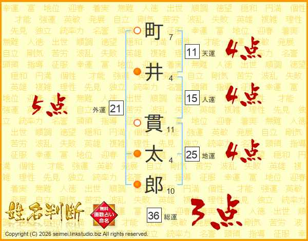 町(7画)井(4画) 貫(11画)太(4画)郎(10画)