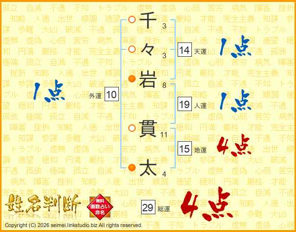 千々岩貫太さんの天運は14画の1点!