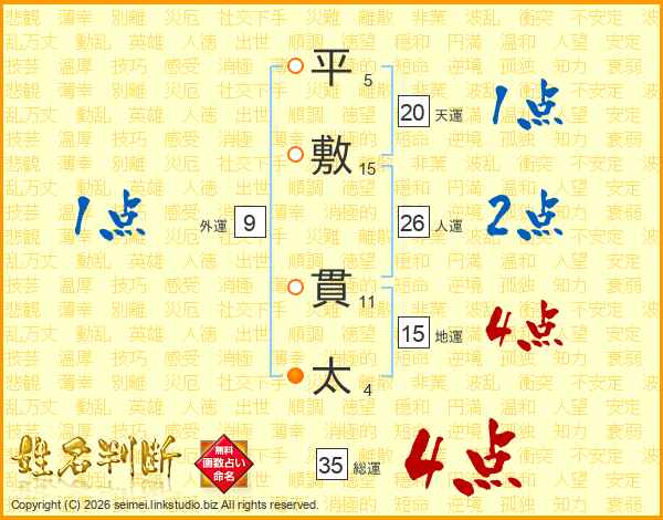 平敷貫太さんの人運は26画の2点!