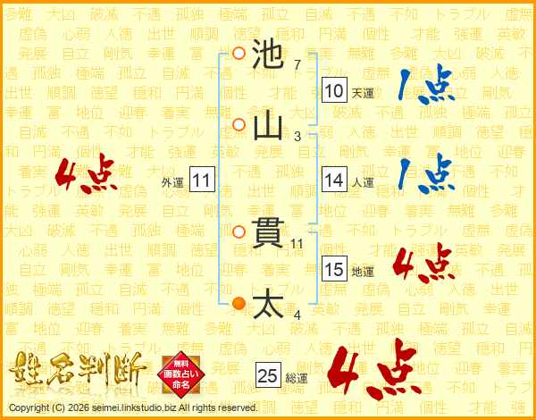 池山貫太さんの総運は25画の4点!
