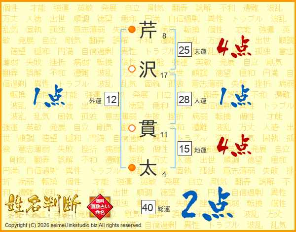 芹沢貫太さんの総運は40画の2点!