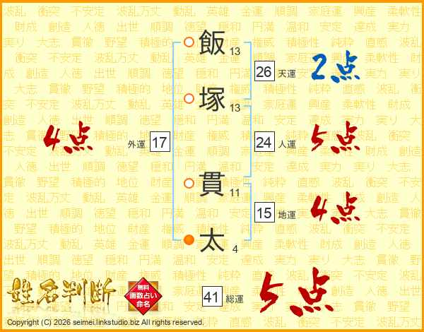 飯塚貫太さんの天運は26画の2点!