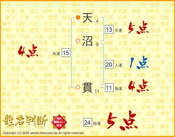 天沼貫さんの総運は24画の5点!