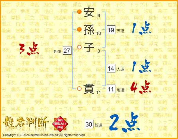 安孫子貫さんの総運は30画の2点!