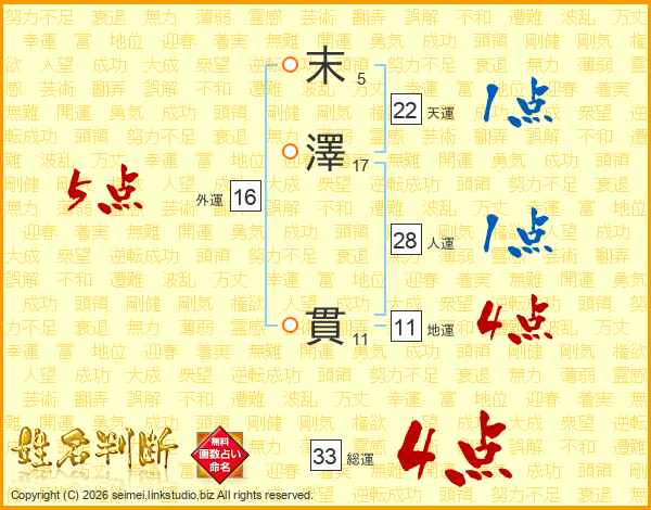 末澤貫さんの地運は11画の4点!