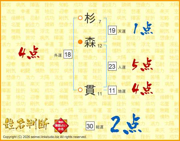 杉森貫さんの人運は23画の5点!