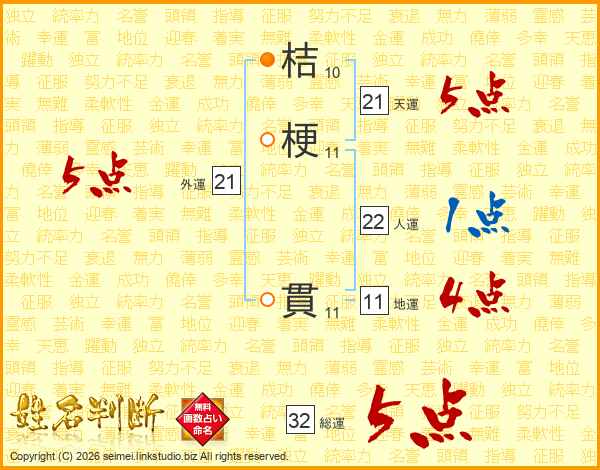 桔梗貫さんの総運は32画の5点!