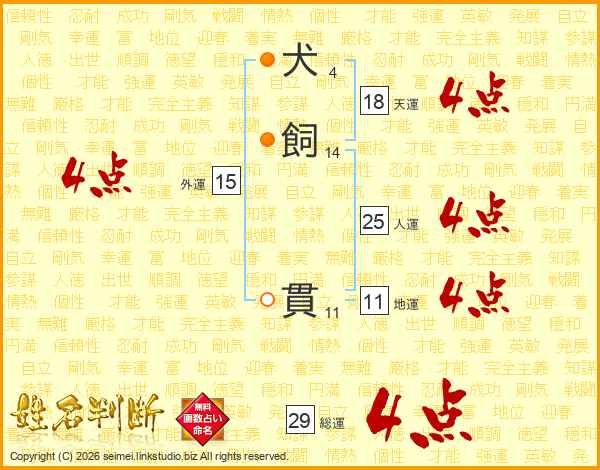 犬飼貫さんの総運は29画の4点!