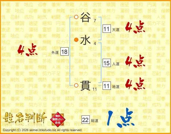 谷水貫さんの天運は11画の4点!