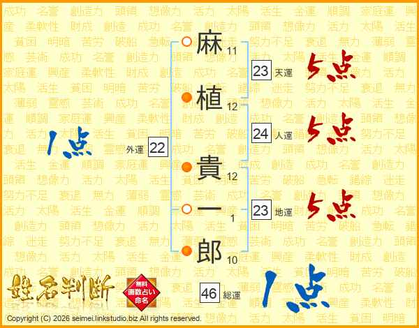 麻植貴一郎さんの天運は23画の5点!