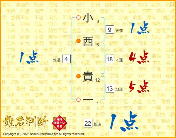 小西貴一さんの総運は22画の1点!