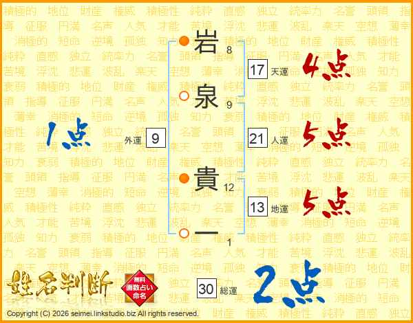 岩泉貴一さんの総運は30画の2点!
