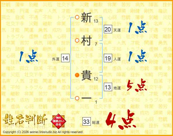 新村貴一さんの総運は33画の4点!