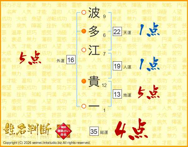 波多江貴一さんの総運は35画の4点!